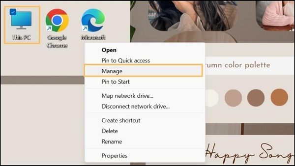 Cách 4: Bạn nhấn chuột trái vào biểu tượng This PC rồi chọn mục Manage.