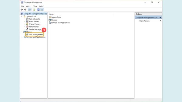 Tại cửa sổ trang Computer Management, chọn Disk Management