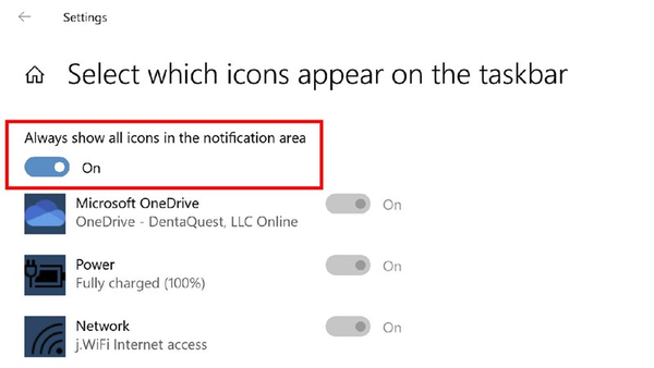 Cách hiển thị icon trên thanh TaskbarBước 3: Tại mục Always show all icons in the notification area bạn gạt thành nút ON để đưa tất cả ra ngoài nhé.
