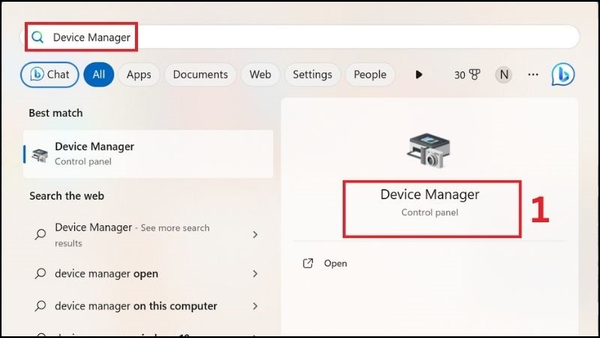 Tìm kiếm và chọn Device Manager