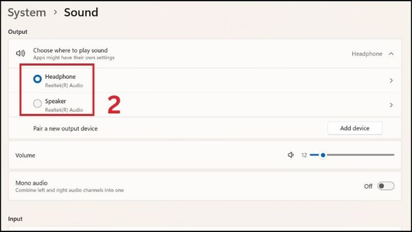 Chọn đầu ra âm thanh bạn muốn