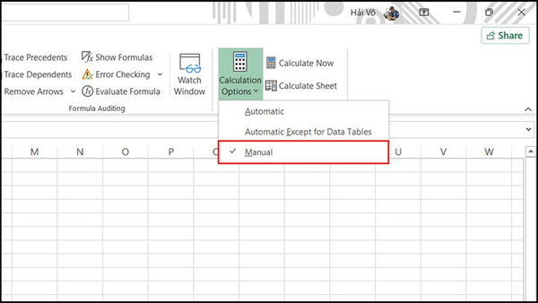 2. Bật tính toán thủ công