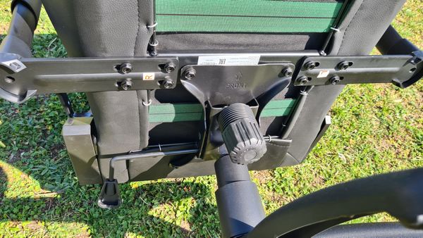 Phía dưới chân ghế còn có cơ cấu điều chỉnh độ nghiêng của ghế để bạn có thể ngả lưng. Không có cơ chế đồng bộ, nhưng hệ thống treo có thể điều chỉnh của chức năng nghiêng rất tốt, bởi vì nó có thể được điều chỉnh cực kỳ mạnh mẽ, do đó, ngay cả những người cồng kềnh cũng không thể ngả người ra sau nếu ghế không được cố định.