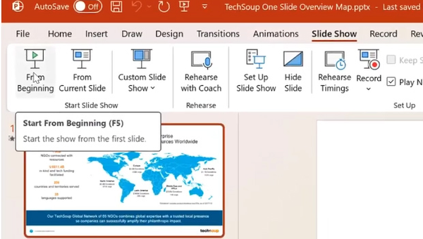 Sau khi đã thiết lập xong phụ đề cho slide PowerPoint, người dùng nhấn chọn vào From Beginning để tiến hành trình chiếu slide.