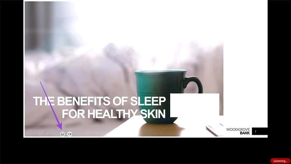 Trong giao diện chiếu slide PowerPoint, bạn nhấn vào biểu tượng phụ đề như hình dưới đây để hiện phụ đề.