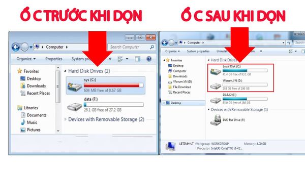 Ổ cứng đầy hoặc chứa nhiều file tạm thời có thể làm chậm máy. Hãy thực hiện:
