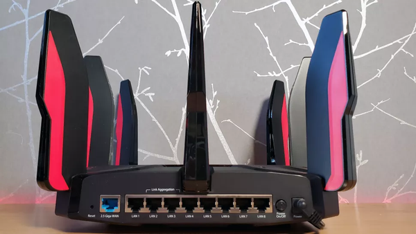 Bảng điều khiển phía sau là nơi có rất nhiều cổng I/O. Nó bao gồm 8 cổng LAN gigabit,1 cổng WAN 2,5Gb, nút đặt lại, giắc cắm nguồn và công tắc nguồn. Phía bên phải của bộ định tuyến có cổng USB 3.0 loại A và cổng USB 3.0 loại C. Bên dưới là bộ phận xử lí lõi 1,8GHz, RAM 1GB và bộ nhớ flash 512MB. AX11000 là bộ định tuyến ba băng tần 12 luồng có khả năng đạt tốc độ dữ liệu lên tới 1.148 (Mbps) trên băng tần 2,4 GHz và lên đến 4.804 Mb / giây trên mỗi băng tần 5 GHz. Nó sử dụng công nghệ Wi-Fi 6 802.11ax mới nhất, bao gồm OFDMA, 1024 QAM.