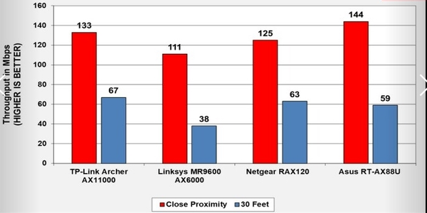 TP-Link Archer AX11000 đạt điểm rất cao với điểm số là 133 Mbps trong khoảng cách gần 2,4GHz