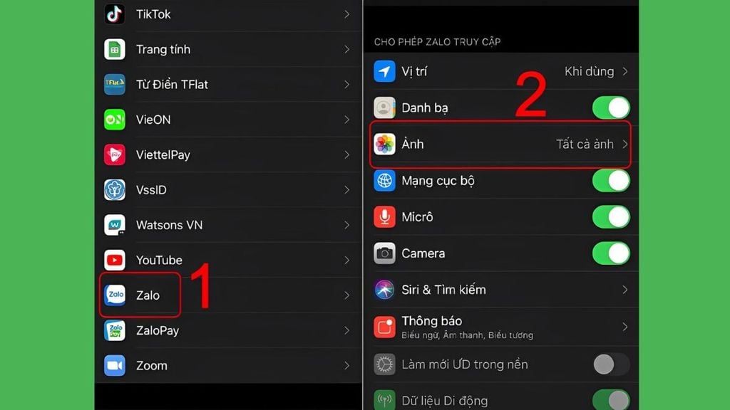 Kiểm tra và cấp quyền truy cập ảnh của Zalo