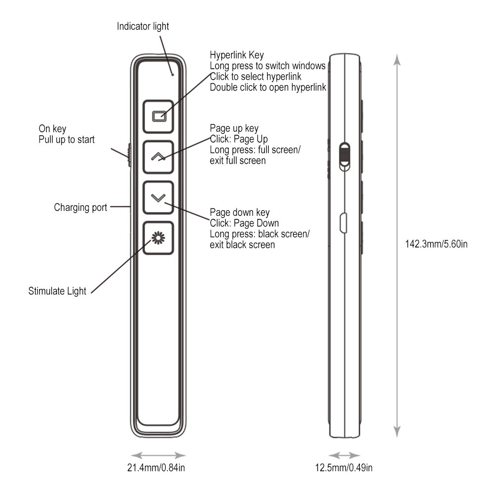 Dòng bút điều khiển slide với thiết kế nhỏ gọn, có pin sạc, cổng usb A có thể kết nối nhanh chóng với các dòng máy tính - Laptop phổ biến hiện nay