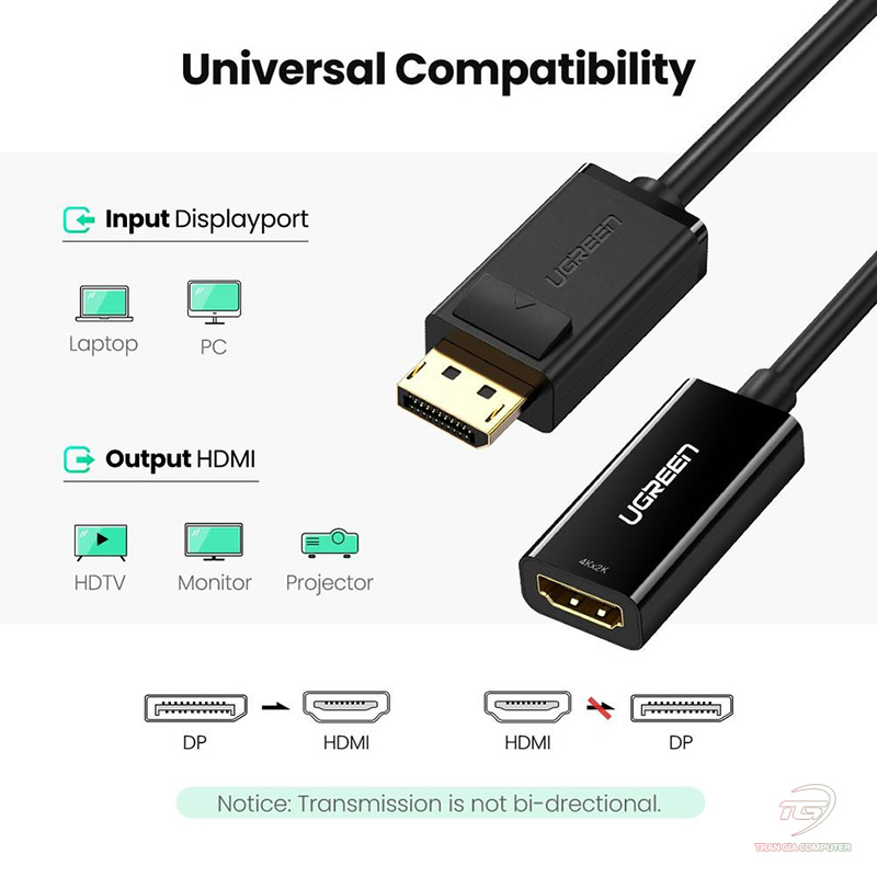 Card đồ họa PC, Laptop doanh nghiệp của bạn chỉ có cổng Displayport nhưng màn hình, TV hay máy chiếu chỉ có cổng HDMI? Đừng lo lắng, Cáp chuyển đổi Ugreen 40363 là giải pháp cao cấp, đáng tin cậy nhất dành cho bạn.