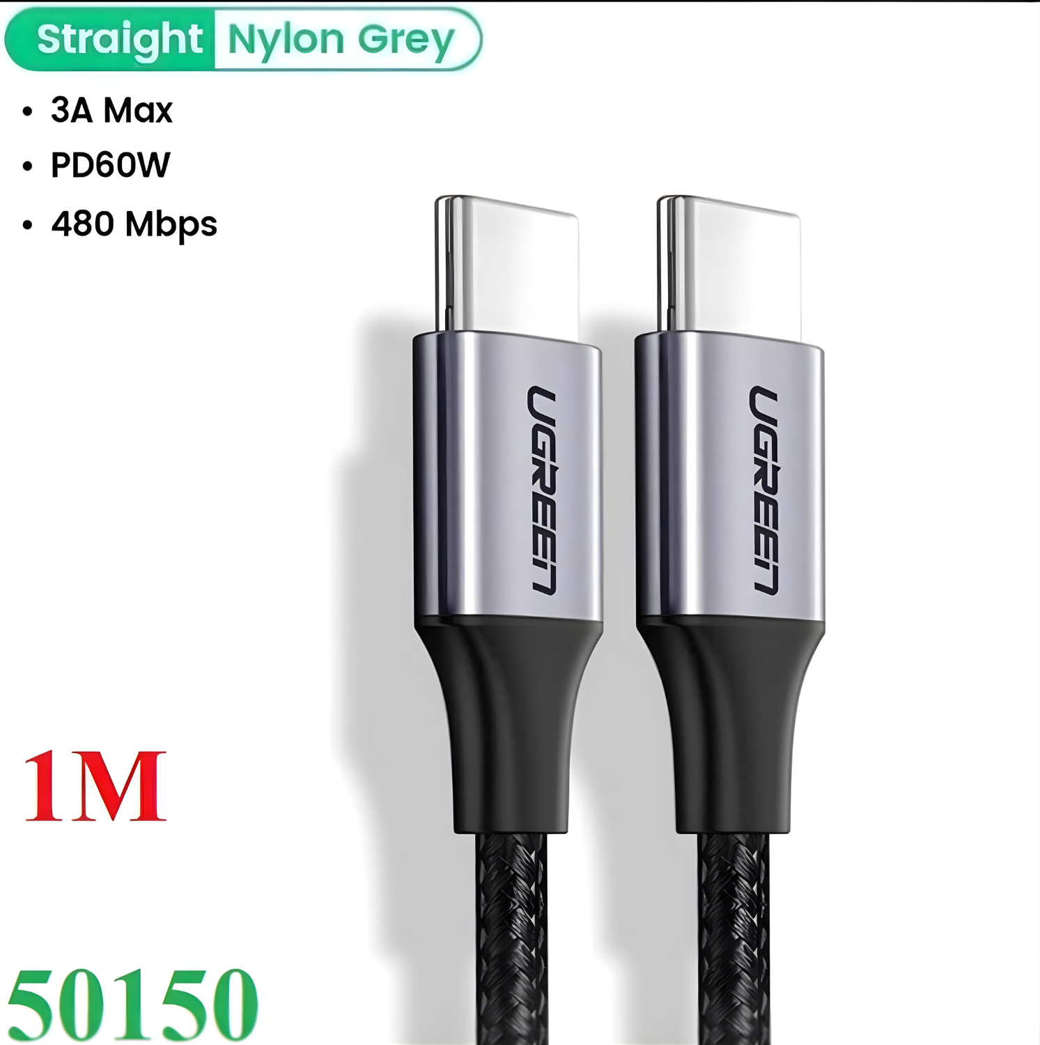 Cáp Sạc Ugreen 50150 (Type-C To Type-C): Gọn Nhẹ, Bền Bỉ, Tối Ưu Tốc Độ 60W