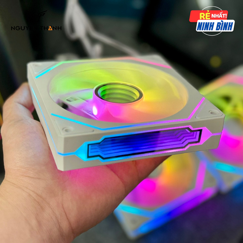 Fan Led Ader Rus ARGB White thiết kế siêu chất và sở hữu các viền nhôm bao quanh nằm ở hai bên khung. Hình dạng của gương vô cực tiếp nối dải chiếu sáng