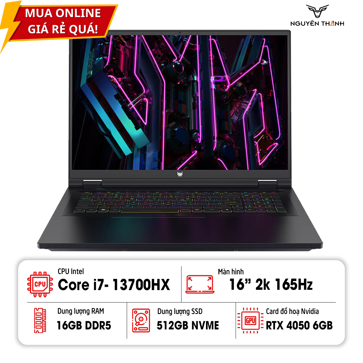 Acer Predator Helios Neo 16 2023 trang bị CPU Intel® Core™ i7-13700HX thế hệ 13 với kiến trúc hybrid đột phá và chuẩn RAM DDR5 4800Mhz siêu tốc mới nhất đem đến nguồn năng lượng khổng lồ chinh phục mọi tựa game bạn có. Kết hợp với đó là GPU NVIDIA® GeForce RTX™ 4050 6GB cho hiệu năng xử lý đồ họa tối ưu.