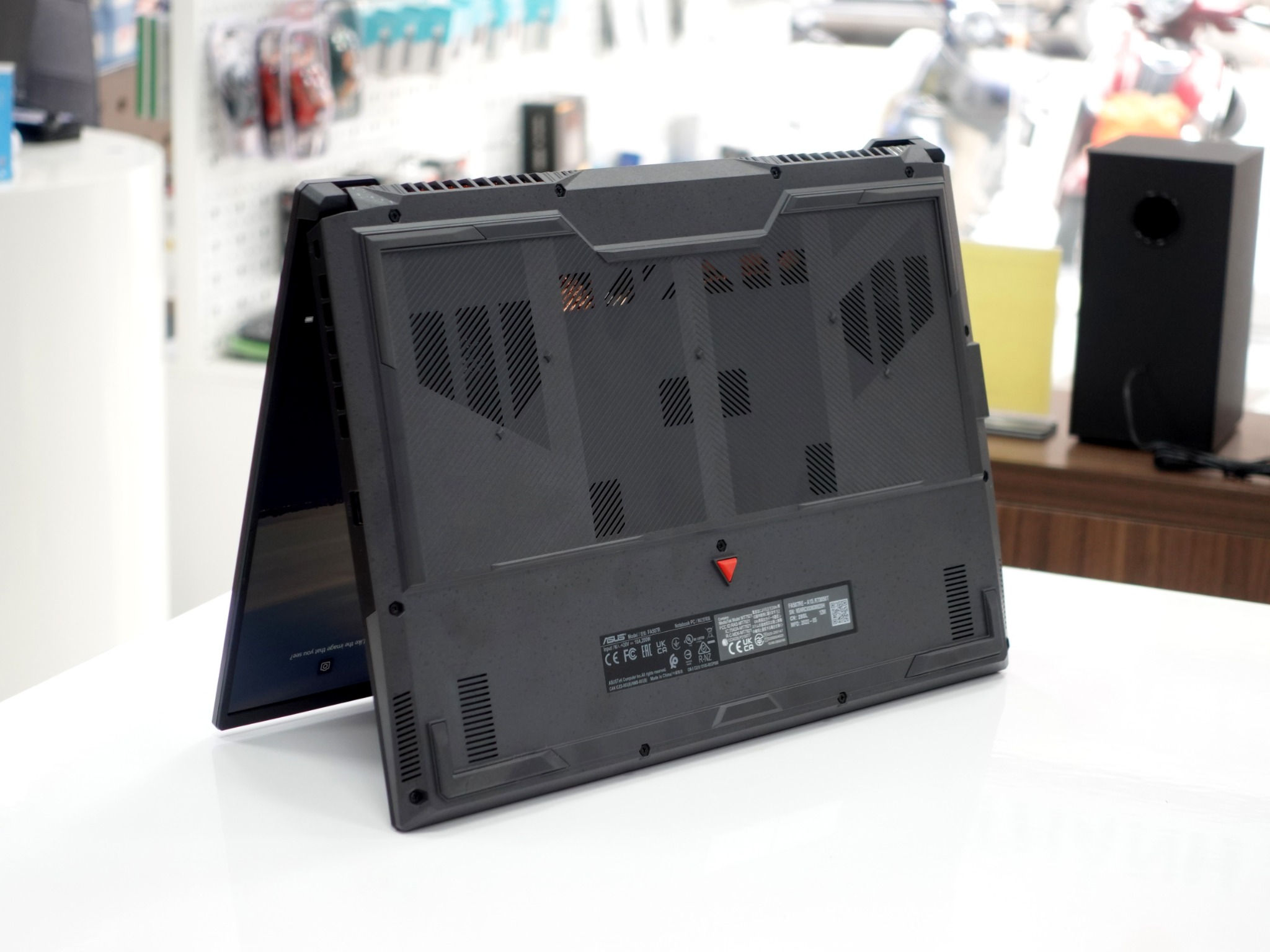 - Thiết kế khung máy nhỏ hơn 4,5% so với các mẫu của năm ngoái, đồng thời logo TUF cũng được tạo hình lại hoàn toàn mới ở nắp máy màu bạc vừa toát lên sự sang trọng, vừa đậm chất game thủ