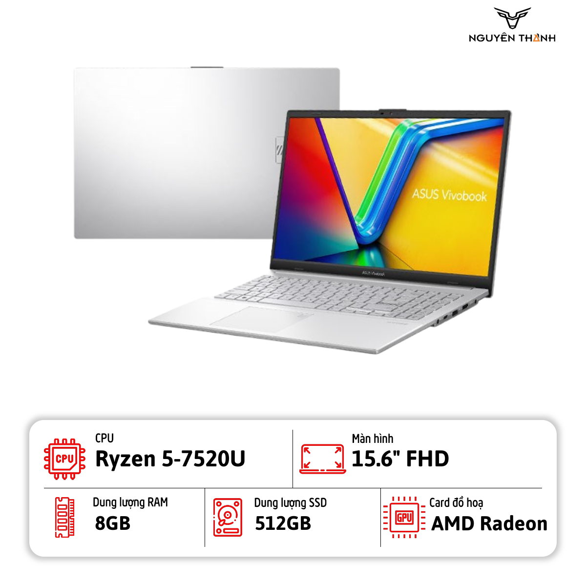 Đánh giá chi tiết Laptop Asus Vivobook Go 15 E1504FA (Ryzen 5 7520U, 8GB, 512GB, 15.6 inch FHD, AMD Radeon Graphics, Win 11, Bạc)