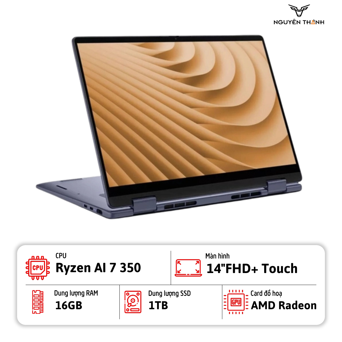 Điểm nhấn của sản phẩm là con chip AMD Ryzen™ AI 7, tích hợp NPU chuyên dụng giúp xử lý các tác vụ trí tuệ nhân tạo nhanh chóng và tiết kiệm năng lượng. Kết hợp với bản lề 360 độ bền bỉ, bạn có thể dễ dàng chuyển đổi từ chế độ laptop hiệu suất cao sang máy tính bảng tiện lợi chỉ trong tích tắc.