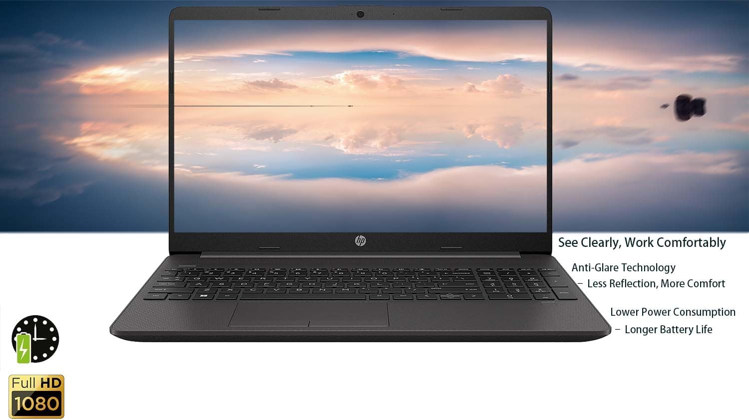 Nói không với màn hình HD mờ nhòe. Màn hình 15.6 inch Full HD (1920x1080) trên HP 255 G9 mang lại không gian làm việc sắc nét, văn bản rõ ràng, giúp bảo vệ mắt của bạn.