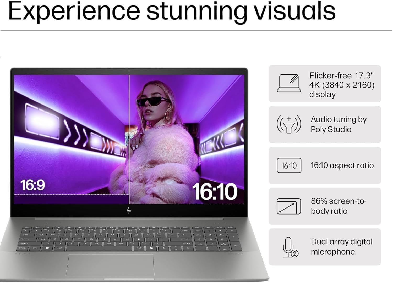 Đây chính là trái tim của trải nghiệm trên HP Envy 17. Màn hình 17.3 inch với độ phân giải 4K UHD (3840 x 2160) cho độ chi tiết đáng kinh ngạc, gấp 4 lần Full HD thông thường. Tấm nền IPS cao cấp mang lại màu sắc cực kỳ chính xác (đạt 100% sRGB), là công cụ không thể thiếu cho các nhiếp ảnh gia, nhà thiết kế và biên tập video. Không gian hiển thị rộng lớn giúp bạn làm việc đa nhiệm với nhiều cửa sổ một cách dễ dàng.