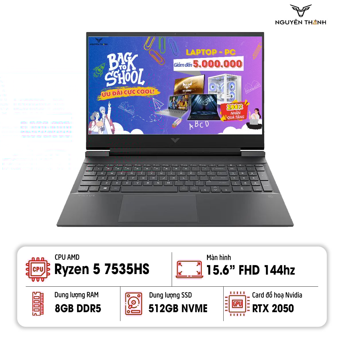 HP Gaming Victus 15-fb1013dx được trang bị bộ vi xử lý AMD RYZEN 5 7535HS, card đồ họa NVIDIA GeForce RTX 2050 4GB, RAM 8GB và SSD 512GB.