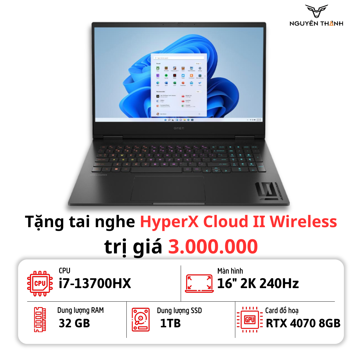 -Cấu hình cực khủng với i7-13700HX, ram 32G, SSD 1TB và VGA 4070 8GB chiến game cực đã làm đồ hoạ cực căng.