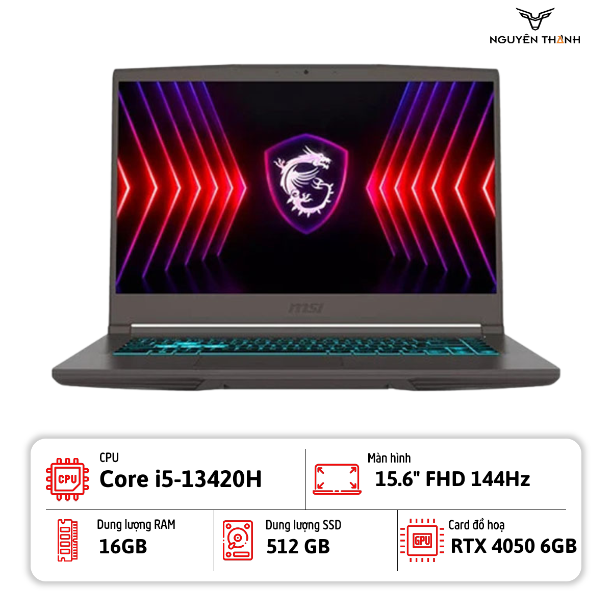 - CPU: Intel Core i5-13420H (8 nhân, 12 luồng, tối đa 4.6GHz) – mạnh mẽ, xử lý nhanh mọi tác vụ.
