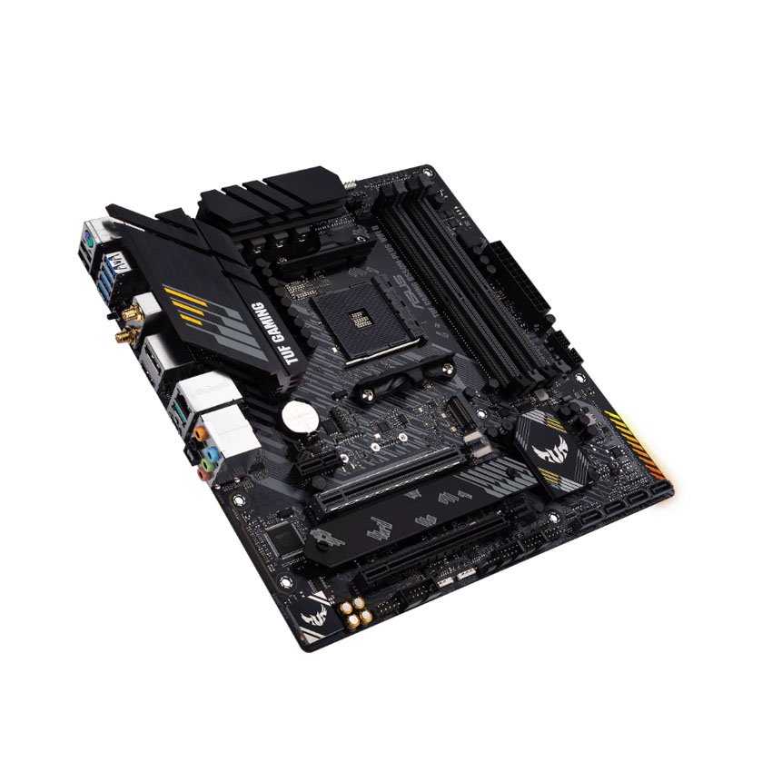 Về kết nối, Asus TUF GAMING B550M-PLUS WIFI II tích hợp Wi-Fi 6 và Realtek 2.5Gb Ethernet, đảm bảo tốc độ mạng nhanh và ổn định cho game online hoặc streaming. Thiết kế Micro-ATX nhỏ gọn (24.4cm x 24.4cm) cùng Aura Sync RGB tạo nên dàn PC thẩm mỹ, hiện đại. Với cổng USB 3.2 Gen 2 Type-C và tính năng BIOS FlashBack, mainboard này đáp ứng mọi nhu cầu kết nối và nâng cấp dễ dàng tại Ninh Bình.