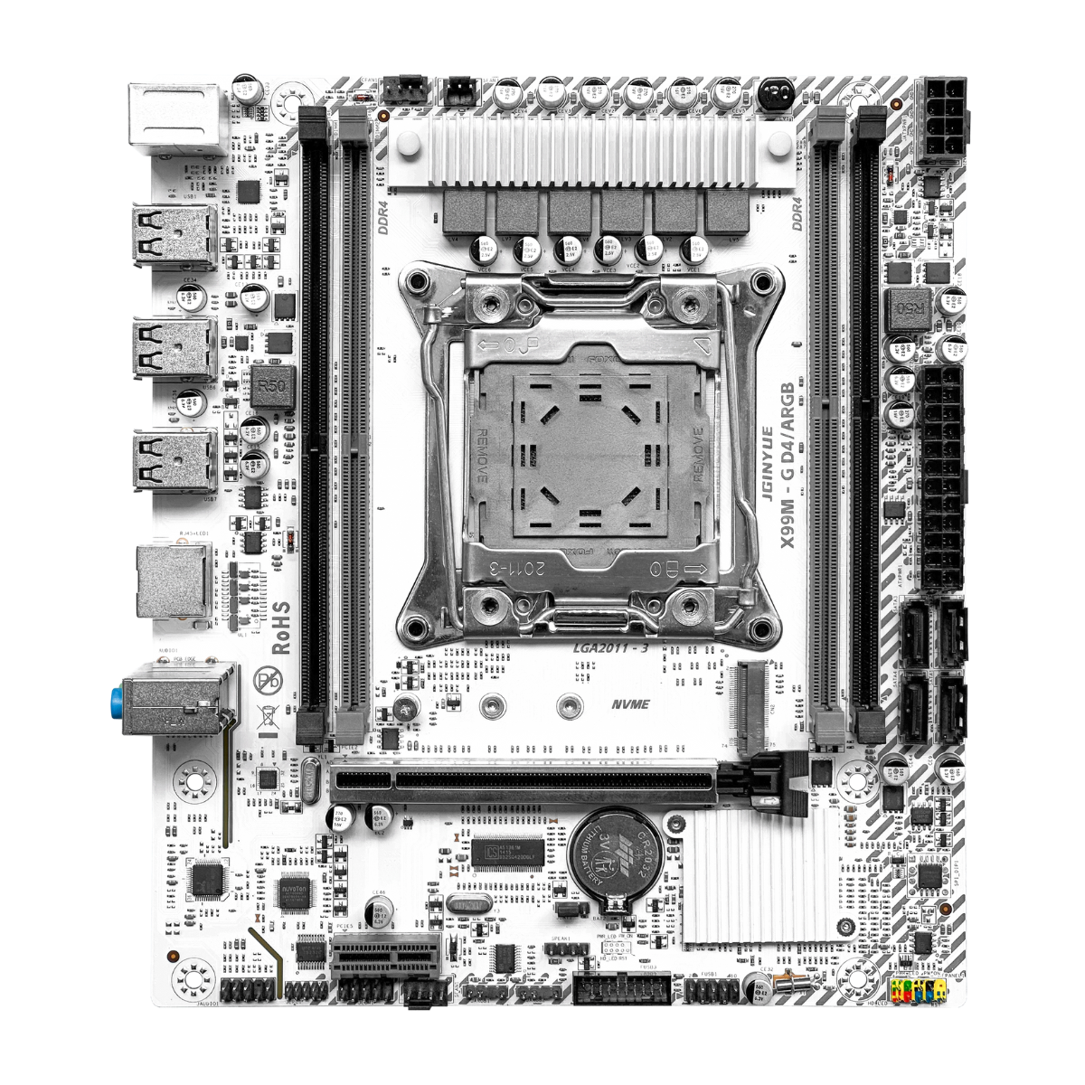 JGINYUE X99M-G D4/ARGB là bo mạch chủ Micro-ATX giá rẻ của JGINYUE (một thương hiệu Trung Quốc chuyên về nền tảng X99 giá rẻ), được thiết kế cho socket LGA 2011-3 của Intel. Sản phẩm hỗ trợ bộ vi xử lý Xeon E5 V3/V4 cũ hơn nhưng mạnh mẽ và bộ nhớ DDR4, rất phổ biến cho các hệ thống chơi game tiết kiệm chi phí hoặc máy trạm. Mẫu bo mạch chủ này nhấn mạnh vào đèn ARGB để tăng tính thẩm mỹ và các tính năng hiện đại cơ bản như hỗ trợ M.2 NVMe. Lưu ý: Một số phân tích cho thấy sản phẩm có thể sử dụng chipset Intel HM55 cấp thấp hơn (ra mắt năm 2010) thay vì X99 được quảng cáo, có khả năng hạn chế các tính năng như hỗ trợ đầy đủ làn PCIe