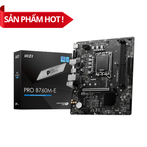 - So sánh: So với MSI PRO H610M-E DDR4 (RAM 3200MHz, M.2 PCIe 3.0), B760M-E DDR5 nhanh hơn ~10-15% FPS nhờ RAM DDR5 6400MHz+ (OC) và M.2 PCIe 4.0 (GTA V: ~90 FPS so với ~80 FPS). So với ASUS PRIME B760M-K D4 (DDR4 5333MHz OC), B760M-E DDR5 hỗ trợ DDR5 nhanh hơn và hiện đại hơn.