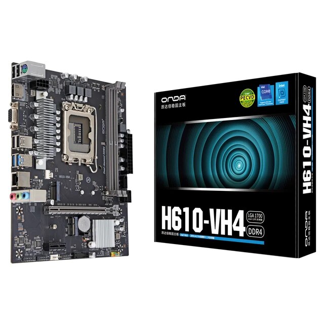 Mainboard ONDA H610-VH4 là một bo mạch chủ Micro ATX sử dụng chipset Intel H610, hỗ trợ CPU Intel thế hệ thứ 12 và 13 (Alder Lake và Raptor Lake) với socket LGA 1700. Bo mạch chủ này hướng đến người dùng muốn xây dựng hệ thống PC giá cả phải chăng mà vẫn đảm bảo hiệu năng ổn định.