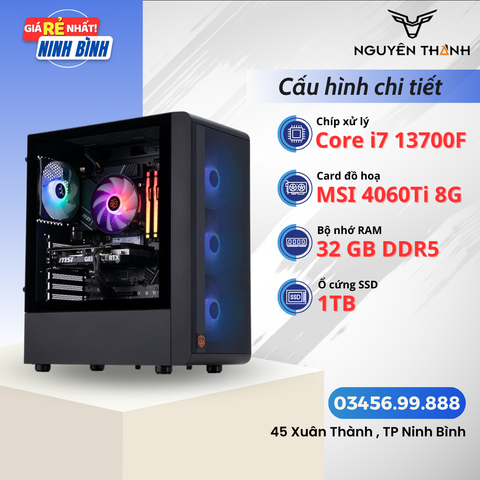 Bộ máy được trang bị CPU core i7 13700F mới nhất cùng với 32GB RAM DDR5 giúp bạn xử lý các tác vụ đồ hoạ, đa nhiệm thoải mái. Cùng với đó là VGA RTX 4060Ti 8G sẽ giúp bạn làm các công việc đồ hoạ 3D hoặc chơi game mượt mà. Ngoài ra, máy được trang bị bộ nguồn 600W công suất thực, đạt chuẩn 80 plus Gold sẽ giúp bộ máy hoạt động ổn định trong thời gian dài