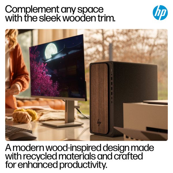 HP OmniDesk AI M03-0155t sở hữu thiết kế "Small Form Factor" (hoặc kích thước gọn gàng tương tự), giúp bạn dễ dàng đặt nó trên bàn làm việc mà không chiếm quá nhiều diện tích. Các đường nét thiết kế đơn giản, tinh tế cùng logo HP nổi bật, tạo nên sự chuyên nghiệp cho không gian làm việc.