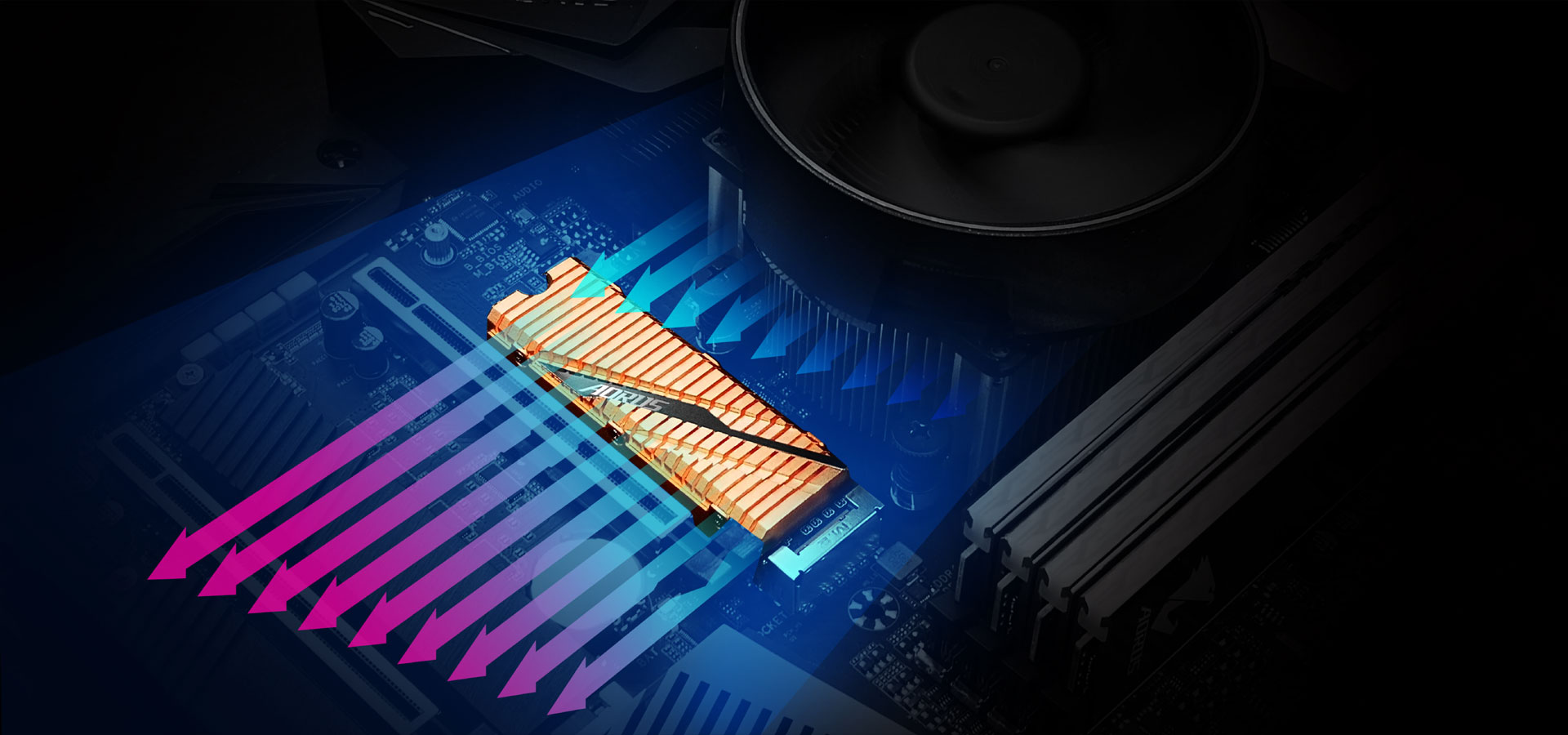 Giải pháp tản nhiệt bằng đồng nhằm đạt hiệu suất cho SSD một cách vượt trội Tản nhiệt đồng đạt hiệu năng tẩn nhiệt tuyệt vời ở cả mặt trước và mặt sau của thiết bị, bộ điều khiển và NAND Flash. Tản nhiệt hoàn toàn bằng đồng có khả năng truyền nhiệt cao hơn 69% so với tản nhiệt nhôm mang lại cho SSD AORUS NVMe Gen4 khả năng tản nhiệt tốt nhất cho hiệu suất đọc / ghi vượt trội | ![]() |