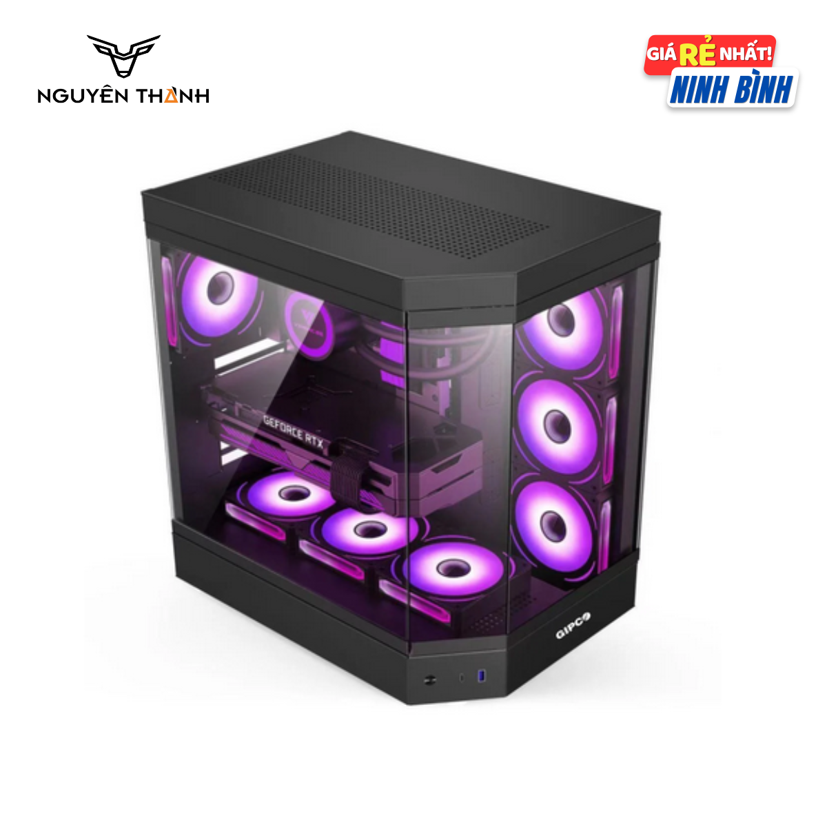 Case hỗ trợ các loại mainboard phổ biến (ATX, Micro-ATX, Mini-ITX) và không đi kèm quạt làm mát, nhưng cung cấp không gian lắp tối đa 10 quạt 120mm (trước 3, trên 3, dưới 3, sau 1), cho phép người dùng tại Thành phố Hoa Lư, Ninh Bình tùy chỉnh luồng khí theo nhu cầu. Ngoài ra, case hỗ trợ tản nhiệt nước 360mm ở mặt trước, phù hợp với các cấu hình mạnh. Với chiều cao tản nhiệt CPU tối đa 165mm và chiều dài VGA tối đa 350mm, Gipco 2628B Black tương thích linh kiện cao cấp như GPU RTX 4090 hoặc CPU Intel Core Ultra 9. Thiết kế cổng kết nối hiện đại (USB 3.0, USB Type-C, HD Audio) và không gian quản lý cáp phía sau giúp hệ thống gọn gàng, là lựa chọn tối ưu tại Máy Tính Nguyên Thành.