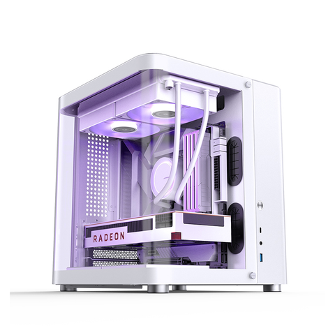 Thuộc sản phẩm của hãng sản xuất vỏ case có tiếng trong ngành, Jonsbo TK-1 WHITE sở hữu thiết kế vô cùng đặc biệt với phong cách "bể cá" gồm mặt trước và cạnh bên trái là kính cường lực. Điều đặc biệt nằm ở chính tấm kính này khi nó là một tấm kính được bo cong liền mạch (được dán phim chống cháy nổ) với cả 2 mặt tạo cảm giác "vô cực" đồng thời cũng phù hợp với tổng thể bo góc của vỏ case. Đây cũng chính là thành phần giúp bạn khoe những linh kiện chất lượng bên trong dàn PC của mình.