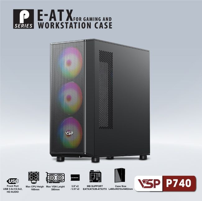 - PSU cover: 3 quạt x120mm140mm x2 (tùy chọn)