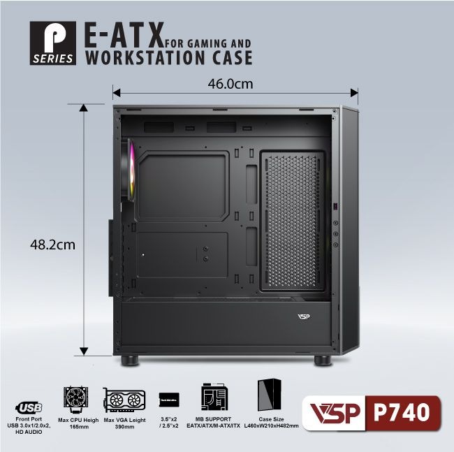 - Mặt sau: 1 quạt x120mm (tùy chọn)