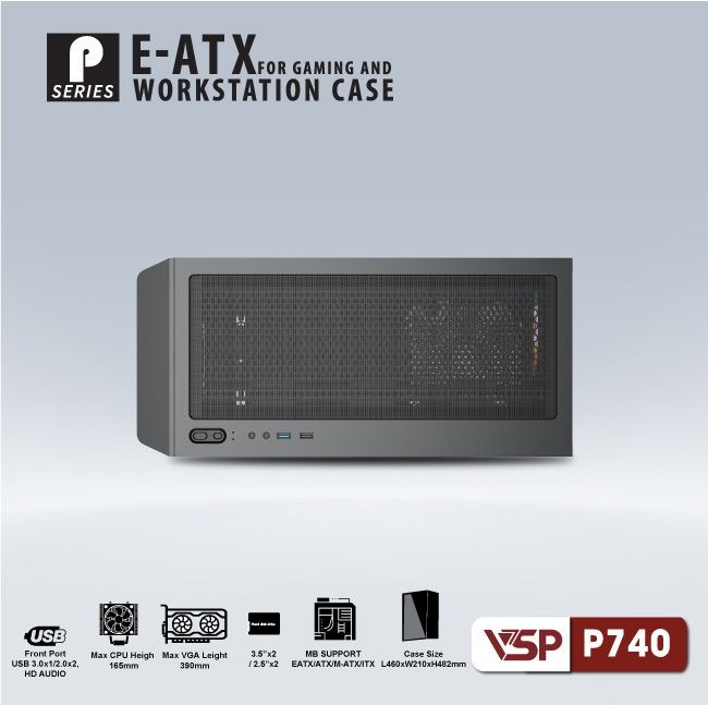 - Khe cắm HDD & SDD: 2x 3.5"+ 1x 2.5" hoặc 1x 3.5"+ 2x 2.5"