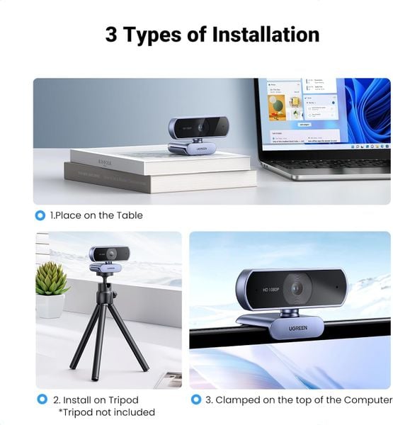 Webcam UGREEN cho PC Ultra HD 1080P 30FPS (CM925) - Giải thích Pháp Chuyên nghiệp
